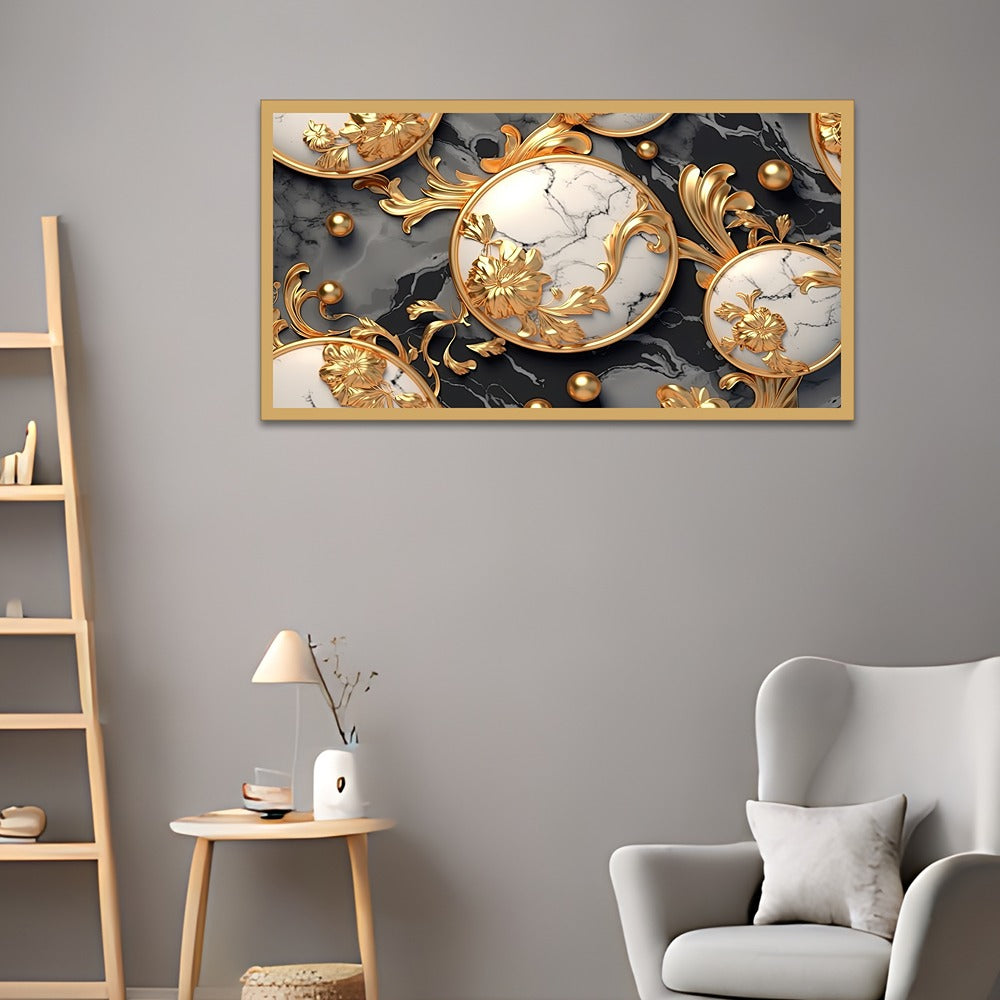 3D Gold White Flowers Art Set Wall Art Floating Frame Canvas Wall Painting